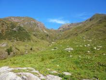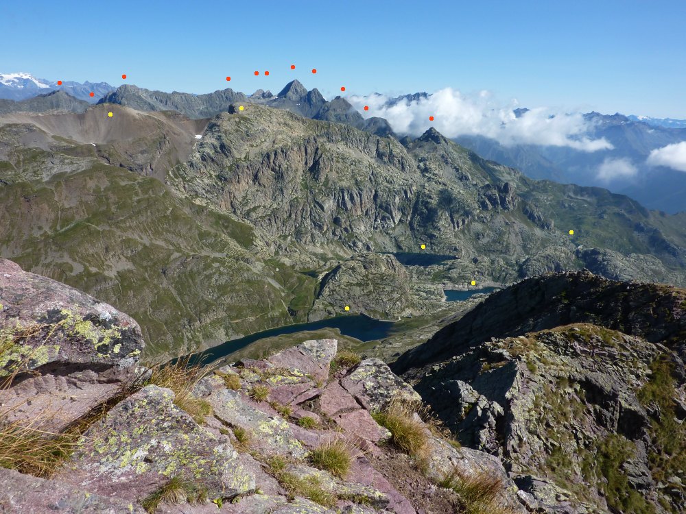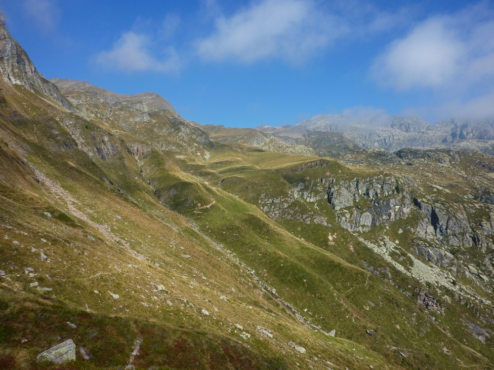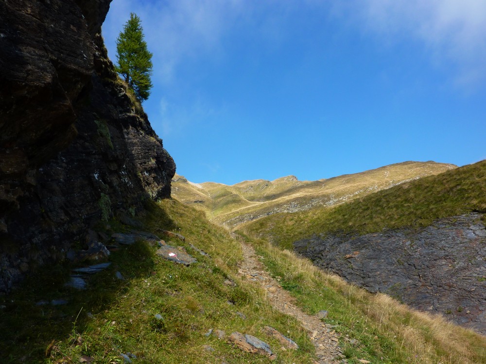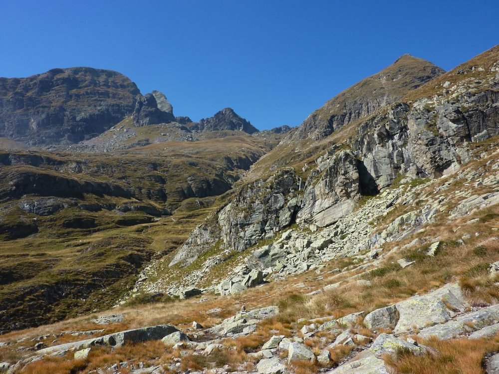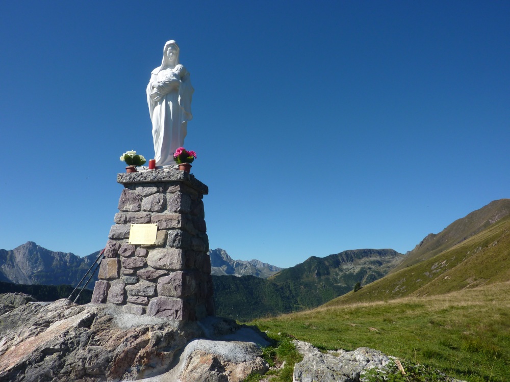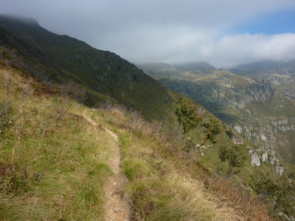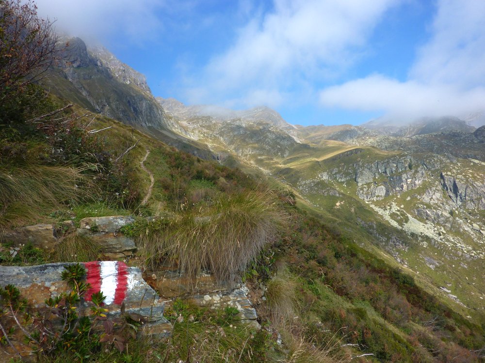 Dalla diga del lago Nero (2013 m) sovrastante l'omonimo rifugio, sulla sinistra del sentiero 268 si stacca (sud) il sentiero 267, che prosegue per un primo tratto in piano fino alla val d'Aviasco. Da qui sale per un breve tratto, poi scende ai pascoli della Baita Corna (1943 m) e, con alcuni saliscendi, attraversa il versante est del Pizzo Salina per raggiungere i prati della Costa di Corna Rossa (1780 m), ove si trova - dal 2011 - la bianca statua di una Madonna con Bambino, svettante sul paese di Valgoglio. Curvando a dx si entra ora nella Val Sanguigno, perdendo quota con un percorso a mezzacosta e, passando dalla Baita Salina di Mezzo (1595 m), si raggiunge il fondovalle a quota 1400 m circa, ove si incrociano il sentiero 265 che conduce in Valcanale nonché il sentiero 232. Con percorso comune a quest'ultimo si scende per la val Sanguigno fino alla centrale di Aviasco (ENEL), a quota 970 m.