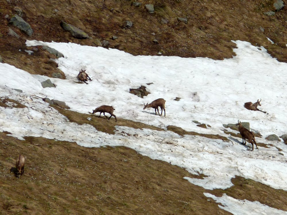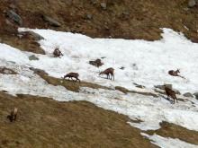 • Nella conca a est del passo, i camosci sembrano preferire l'ultima neve al primo caldo!