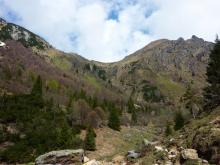 • La larga sella del passo di Marogella vista dalla valle della Corte, all'imbocco del 270a
