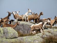 • Poco a nord del passo di Marogella, le capre si godono l'ultimo calore del sole