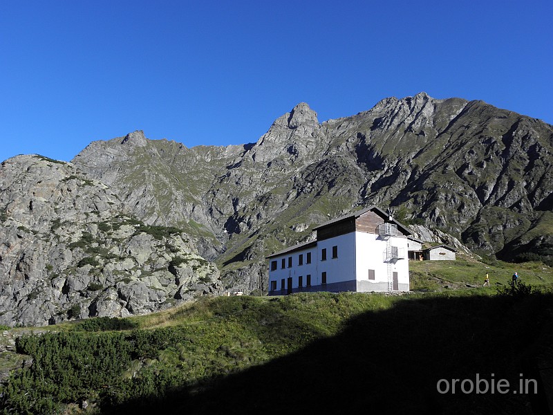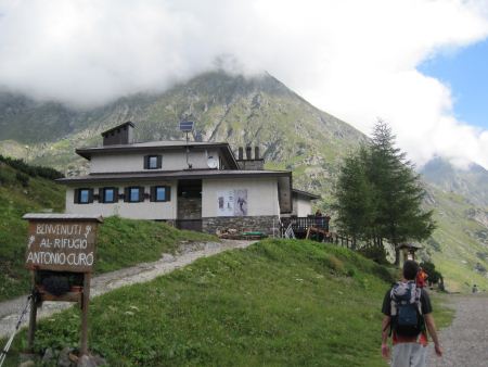 Si parte dalla frazione Beltrame di Valbondione (940 m). Seguendo la strada per Lizzola, dopo il tornante sulla destra (circa 200 m) in prossimità di un bar, una strada sterrata parte sulla sinistra e, con pendenza regolare, si inoltra nel bosco. Innalzandosi si risale così il fianco della valle, lasciando in basso il corso del fiume Serio. Dopo aver attraversato alcuni valloni si raggiunge la stazione inferiore della teleferica che trasporta i viveri al rifugio. La strada sterrata diventa ora una mulattiera che, uscendo dal bosco, continua a salire per piegare poi bruscamente verso sud (1590 m) e compiere diversi tornanti. Dopo aver incrociato il sentiero 304/sentiero 306 a 1748 m di quota si prosegue, ora verso nord e, dopo aver percorso un tratto "aereo" scavato nella roccia del monte Verme, si è al rifugio Curò (1915 m).