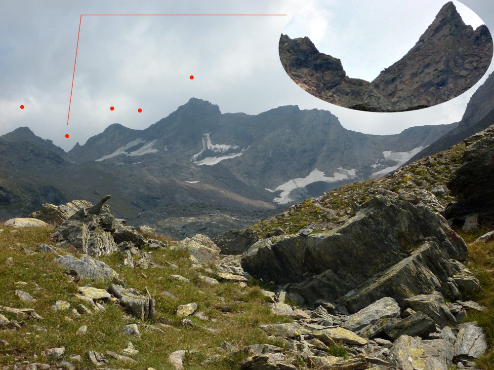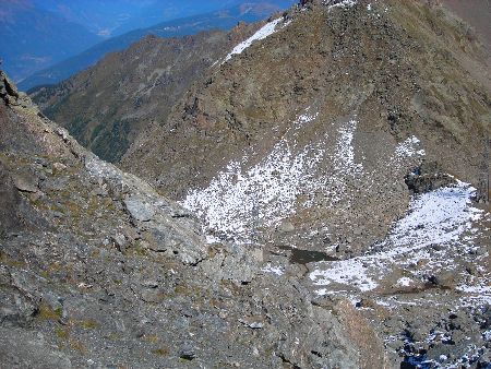 • Il lato orientale della bocchetta del lago Gelt, qui zoomato dalla vetta del M. Torena