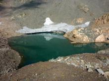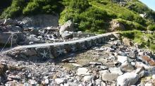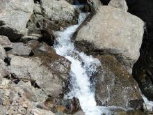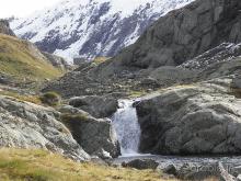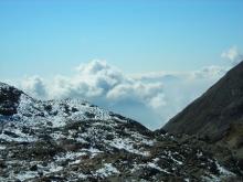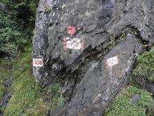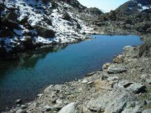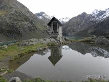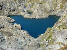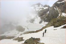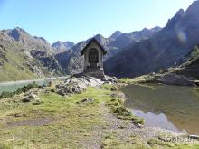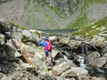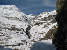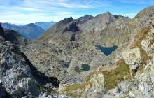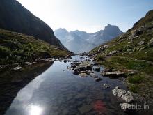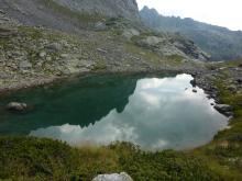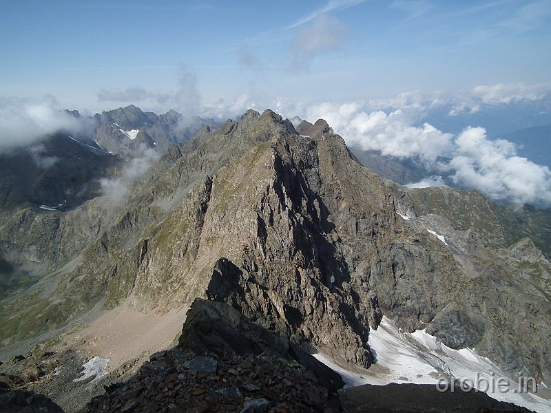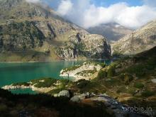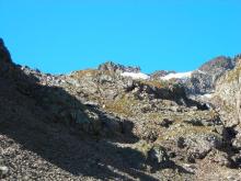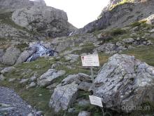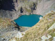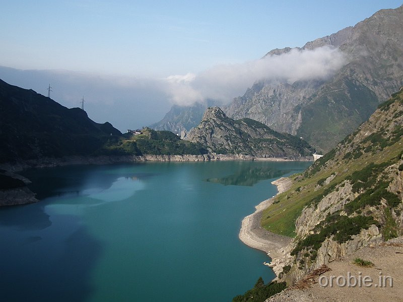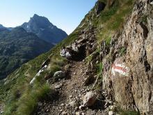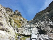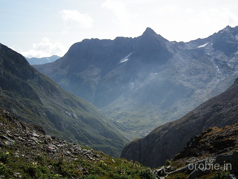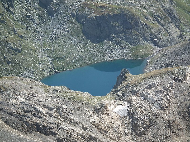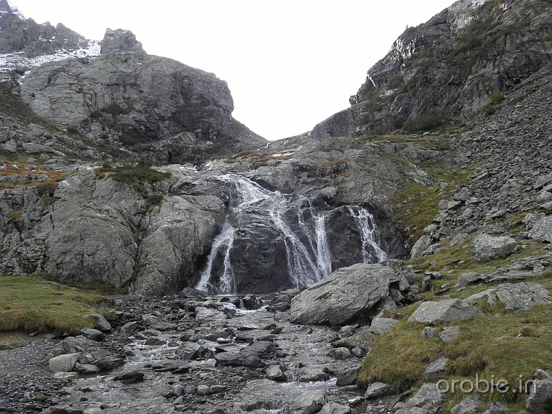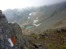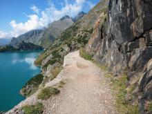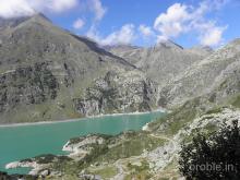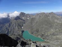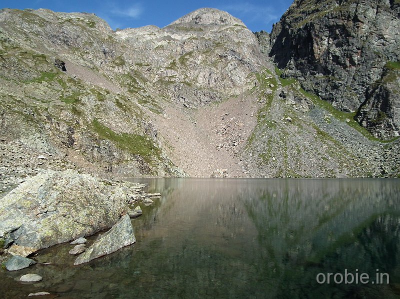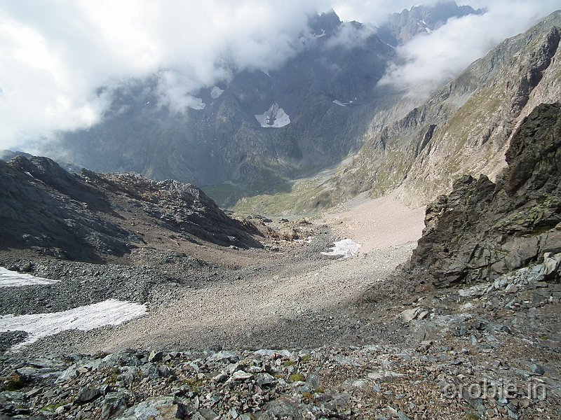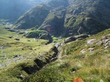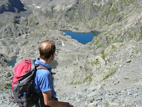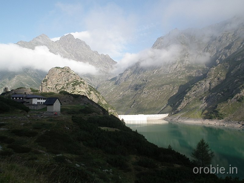 Dal rifugio Curò (1915 m) si costeggia il lago artificiale del Barbellino seguendo la comoda mulattiera che attraversa la Val Cerviera (sentiero 321), la Valle del Trobio e risale la valle del fiume Serio verso il lago naturale. Il sentiero 310 si stacca sulla sinistra a quota 2050 m circa (dopo aver superato un ponte) e risale il vallone che scende dal lago di Malgina, ora sul lato destro, ora sul sinistro, con numerose svolte. Si arriva al lago di Malgina (2340 m), si attraversa nuovamente il torrente emissario e si lascia sulla sinistra il sentiero 335 che sale al passo del Bondone. Si rimonta il versante est sovrastante il lago raggiungendo i piani che ospitano il lago Gelt (2560 m) ed altri numerosi specchi d'acqua senza nome. Sempre procedendo in direzione est si punta a un ripido canalone di sfasciumi e massi che faticosamente si risale con numerose svolte fino alla bocchetta del Gelt (2727 m) e, sempre con svolte, si ridiscende il ripido versante che sovrasta l'ampia sella del passo di Caronella (2612 m).