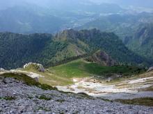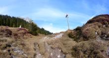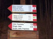 Prima del Passo della Presolana (Albergo Spampatti - 1260 m) si imbocca sulla sinistra la strada forestale che esce ben presto dal bosco e attraversa i prati in direzione ovest. Senza quasi dislivello si arriva alla valle di Campello e si lascia sulla destra la strada che sale alla baita Cassinelli. Nel bosco si guadagna quota arrivando alla malga Corzenine (1363 m) e si continua sempre lungo la strada che porta alla Baita Cornetto. Arrivati a quota 1480 m circa si lascia detta strada e si piega su sentiero a destra risalendo i pendii che conducono al Colle della Presolana (1698 m). Con una veloce discesa si raggiunge infine la Malga della Presolana (1538 m).