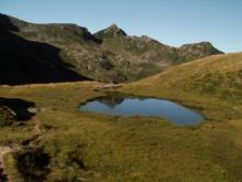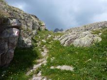 Da Lizzola (1259 m) si percorre la strada forestale che risale la Val Bondione. Dopo il primo tratto di valle quasi pianeggiante, si sale poi con più decisione su sentiero (attenzione, breve tratto con catene su placca rocciosa) sempre in sinistra orografica del torrente, fino all'incrocio con il sentiero 304 (1620 m - Sentiero delle Orobie orientali). Si supera poi un tratto più ripido che conduce alla baita (1961 m) e ai laghetti di Sasna. Si continua per pascoli, torbiere, laghetti e rocce montonate raggiungendo - a quota 2316 m - il punto ove si attraversa il torrente che nasce dal lago di Bondione e si passa sul lato orografico destro della valle. Da lì si sale con più decisione, raggiungendo la testata della valle ove si incrocia il sentiero 321 (2550 m circa) proveniente dalla val Cerviera. Si supera un ultimo breve tratto per salire al passo di Bondione (2650 m circa). Il sentiero 321, in questo tratto, scorre poco più a sinistra (salendo) e raggiunge anch'esso il passo di Bondione. Dal passo è possibile salire in circa 30' al Pizzo dei Tre Confini seguendo un sentiero che aggira i tratti più difficili della cresta.