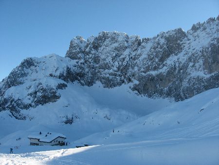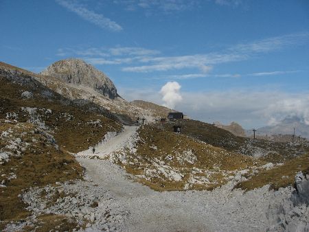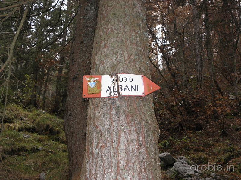 Dalla frazione Carbonera di Colere (1043 m - Parcheggio impianti di risalita) si sale lungo la strada forestale (inizialmente in comune con sentiero 404) che porta alla Malga Polzone per circa un km fino a quota 1239 m. Si prende il sentiero sulla sinistra e si prosegue il cammino (alternativa più ripida con sentiero 403A) attraversando il bosco fino a quota 1690 m dove si incrocia il sentiero 406. Si prosegue sulla sinistra (sud) e si guadagna la zona delle baracche che ospitavano i minatori che provvedevano a estrarre la fluorite - un minerale da cui si ottiene il fluoro - dalle vecchie miniere chiuse all'inizio degli anni '80 del Novecento. Il rifugio Albani (1939 m) è giusto 200 m oltre di esse.