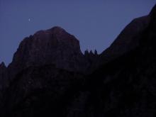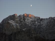 • Presso M.ga Polzone, una luna del crepuscolo impreziosisce una Presolana già magica di per sé.