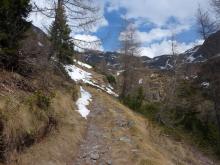 Sentiero che conduce all'incrocio con il sentiero 416 (Passo Vivione-Rifugio Tagliaferri) sullo spartiacque con la Valtellina nella zona dei laghetti di S. Carlo e del Venerocolo
