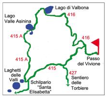 Sentiero che permette di raggiungere i laghetti di Valle Asinina e che si collega al sentiero 416 nei pressi del lago di Valbona