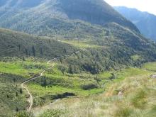 Al passo del Vivione (1828 m), poco prima del Rifugio Passo del Vivione, si imbocca a sinistra una strada sterrata (bacheca e cartelli segnavia) che conduce alla Malga Gaffione (1825 m). Prima di raggiungere la baita si prende il sentiero a destra e si inizia a salire nella valle che scende dal lago di Valbona (2055 m). Superato il lago, si sale la costa di Valbona con pendenza costante e, con ampi tornanti, si giunge al passo del Gatto (2416 m). Superato il passo del Gatto si scende e si passa a destra dei laghetti di San Carlo, oltre i quali si arriva alla piana dei laghetti del Venerocolo e all'omonimo passo (2314 m - sentiero 414). Di seguito si incontra il tratto più impegnativo del sentiero: si sale al passo del Demignone (2485 m) e poi, per un tratto particolarmente esposto (presenza - a tratti - di catene corrimano), si comincia a scendere per poi arrivare al passo del Vò (2368 m). Proseguendo si giunge infine al passo di Venano, a pochi metri dal rifugio Nani Tagliaferri (2328 m).