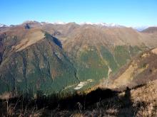Vista panoramica sulla valle sottostante e sui monti dirimpetto.
