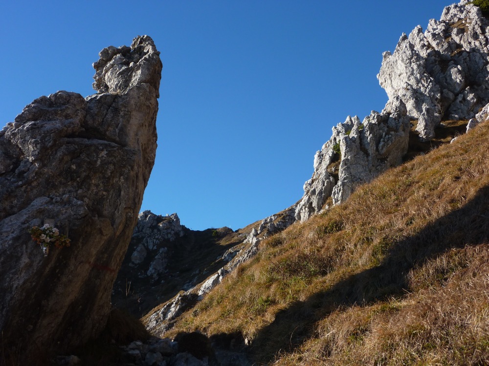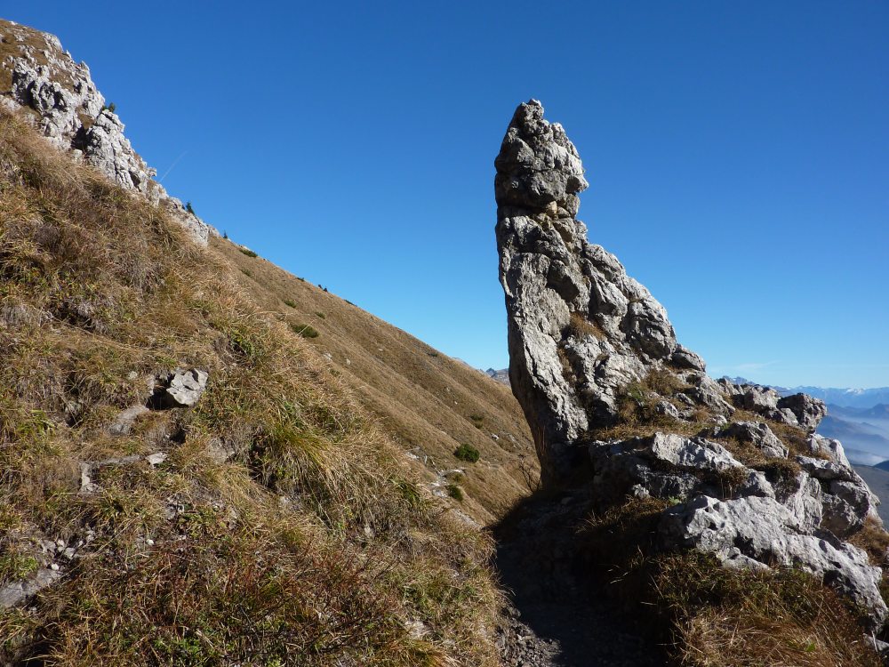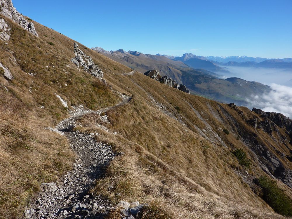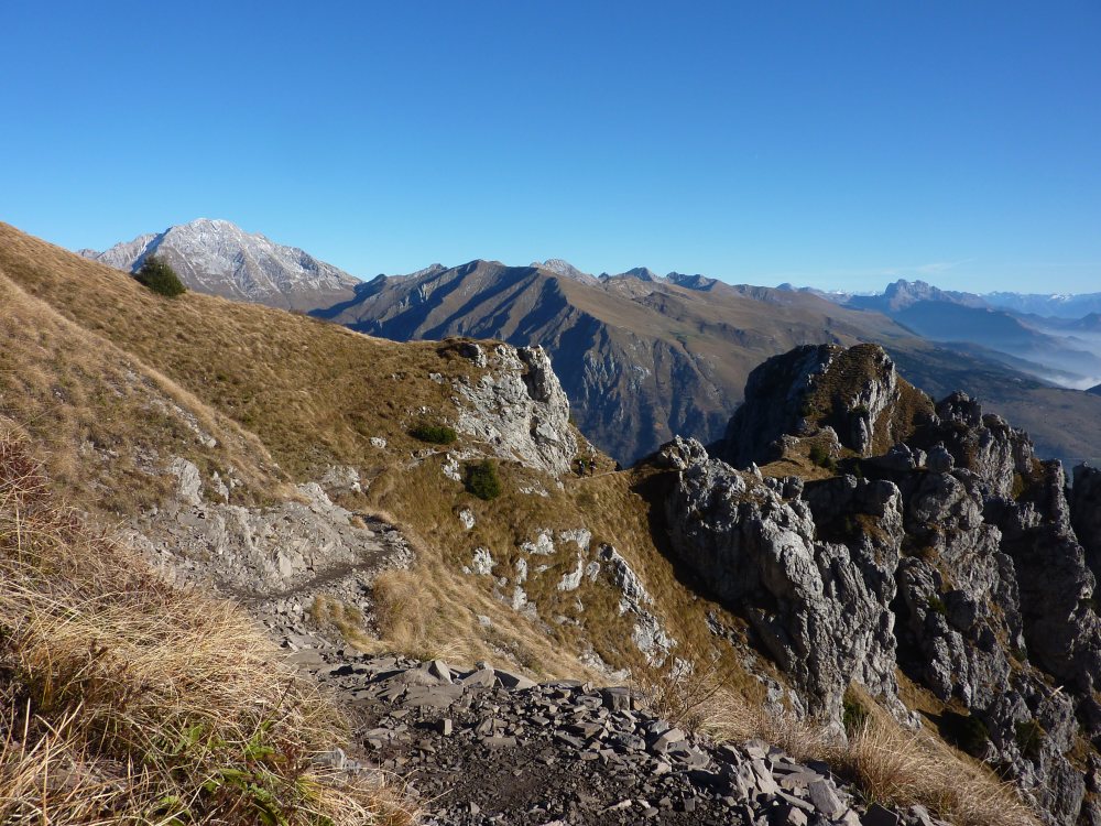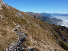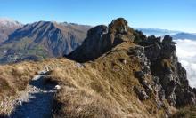 Questo è il percorso più frequentato e più rapido per raggiungere la vetta del Monte Alben, cima poco sopra i 2.000 metri di altitudine che consente di godere di un ampio panorama (è presente un geolabio). La cresta finale è divertente ma non difficile se si segue il percorso corretto.