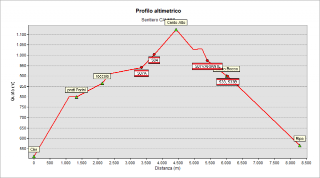 Il segnavia 507 è stato assegnato nel 2016 anche al tratto che dal Canto Basso scende fino a Ripa di Poscante.