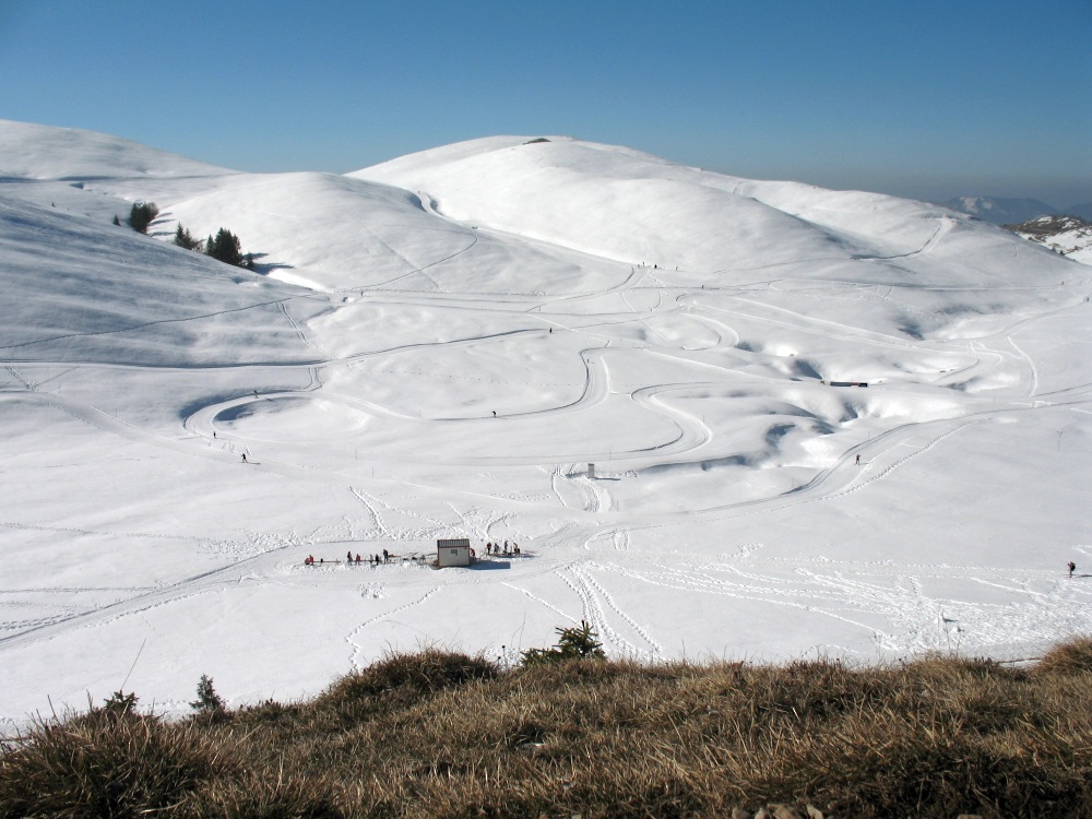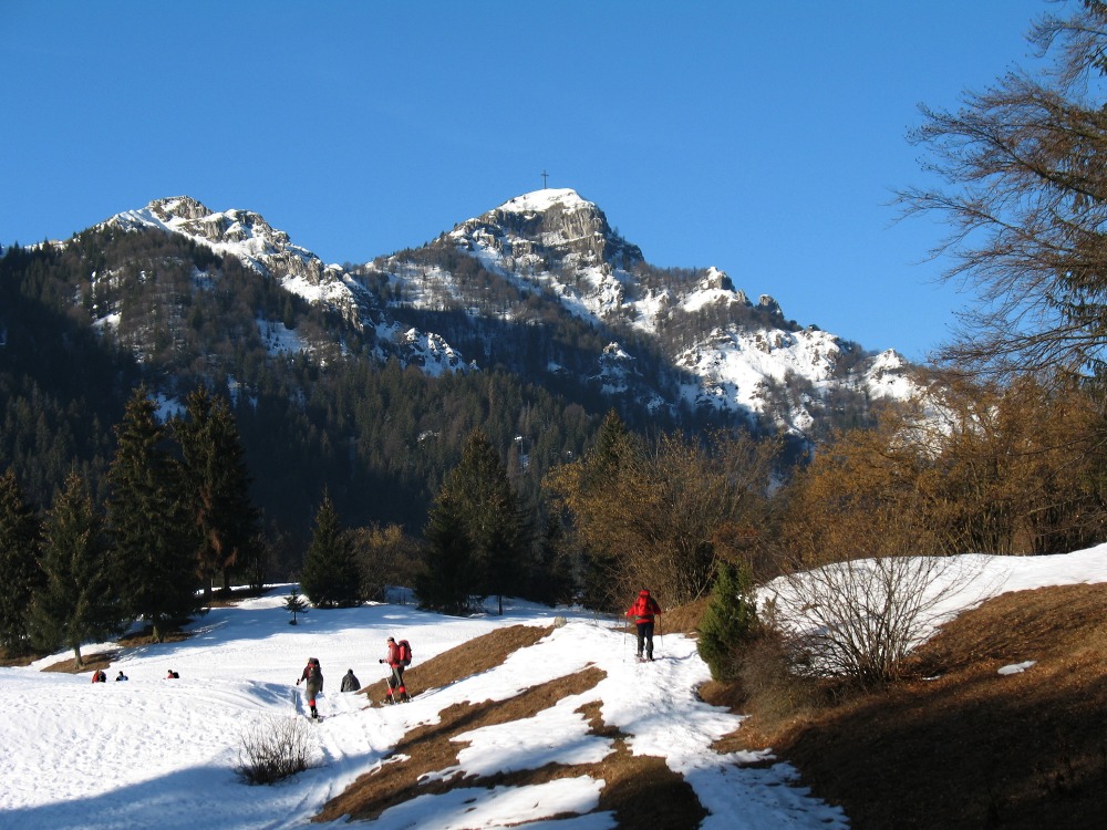 Da S. Lucio (1027 m) si attraversa un prato sulla destra e si sale nel bosco, sino ad incontrare la partenza del sentiero che coincide con la strada forestale che sale alla Baita Pianone (1142 m). Si supera la piana tenendo la destra (all'estremità sinistra del pascolo, invece, si percorre ancora il sentiero 508 ma in senso inverso da come descritto) e si prende a salire nel bosco per giungere alla Forcella Larga (ruderi Capanna Ilaria - 1470 m). Si prosegue in falsopiano sulla sinistra e si segue poi la stradina che, in breve, giunge a una piccola cappelletta: la Tribulina dei Morti della Montagnina (1483 m). Giunti alla sella tra il M. Farno e la Montagnina, si trascura il sentiero 545 che scende al Campo d'Avene e si tiene la sinistra, guadagnando leggermente quota, fino a toccare la sella a quota 1490 m posta tra il Monte Fogarolo e la Montagnina. Si scende nel rado bosco fino ad una pozza (incrocio sentiero 545b) e ad incrociare una strada forestale che si segue in salita per un breve tratto fino ad una baita con grandi prati (Alpe Fogarolo). Si prosegue lungo detta strada in discesa (scorci sul lago d'Iseo, la zona di Bossico e il M. Guglielmo) attraversando prati e boschi fino a quota 1166 m, dove si prende il sentiero a sinistra che conduce alla Cascina Succo Martino (1181 m). Superata questa costruzione, dopo un tratto nel bosco ed una breve risalita, si giunge infine alla località Pianone - dove termina l'anello - e si ripercorre a ritroso il cammino fino a S. Lucio.