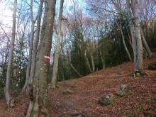 Il tracciato inizia presso il Santuario della Madonna della Neve (o della Forcella), posto alla forcella di Nespello (ca. 890 m). Si entra nel bosco per poi raggiungere in breve tempo un grande prato che, costeggiato per sentiero prima e per stradina poi, porta alla Stalla Aral (una lunga costruzione ora ristrutturata). Lì si trova una biforcazione dalla quale - a destra - si stacca il sentiero 519C. Il nostro sentiero va invece a sinistra e s’inoltra in un bel bosco, per un breve tratto in leggera pendenza. Zigzagando si prende poi quota velocemente, giungendo infine alla piazzola per elicotteri presso la quale sorge - dal 2022 - la struttura del Rifugio G.A.M. al Suchello (1510 m). In tal punto si incrocia il sentiero 519, diretto alla località Sedernello. Dal rifugio, in pochissimi minuti, si giunge in vetta al M. Suchello (1541 m).