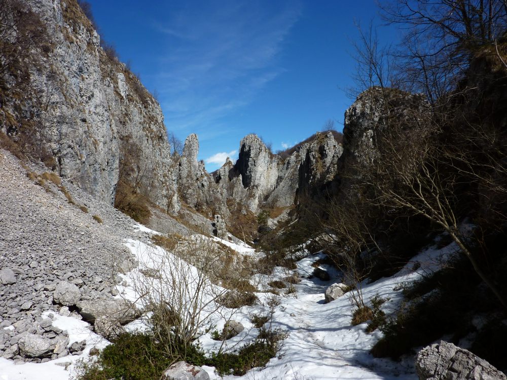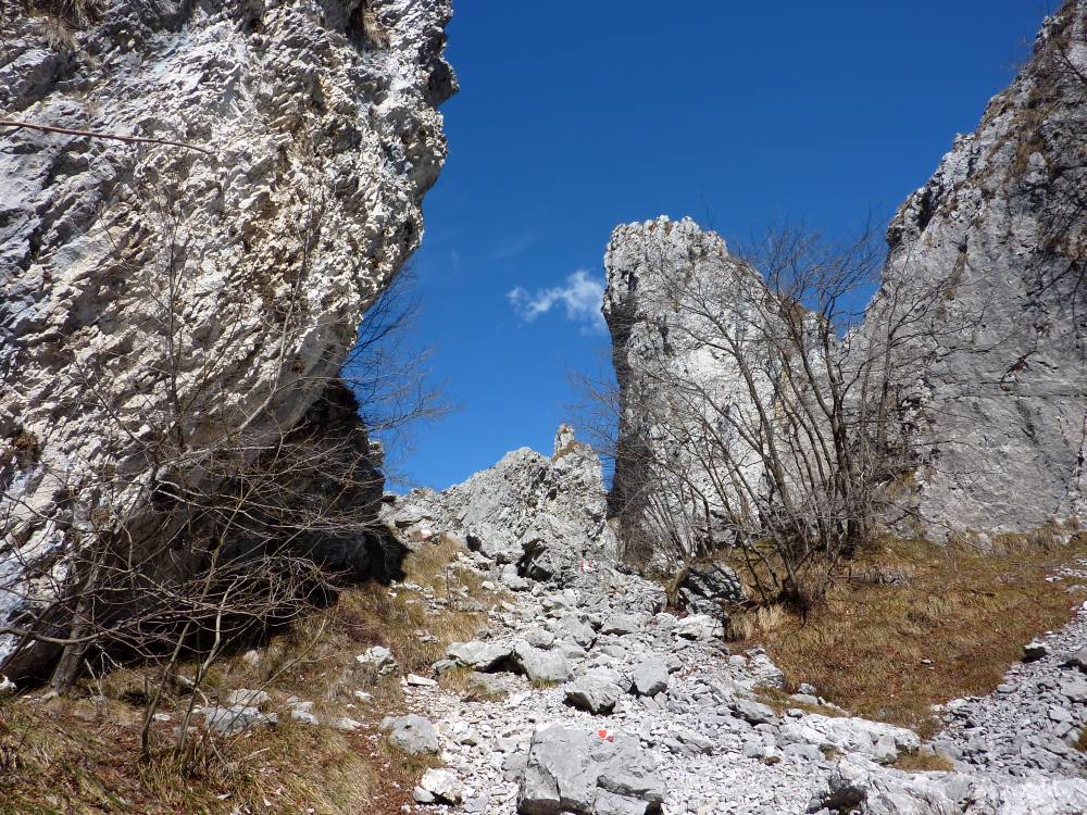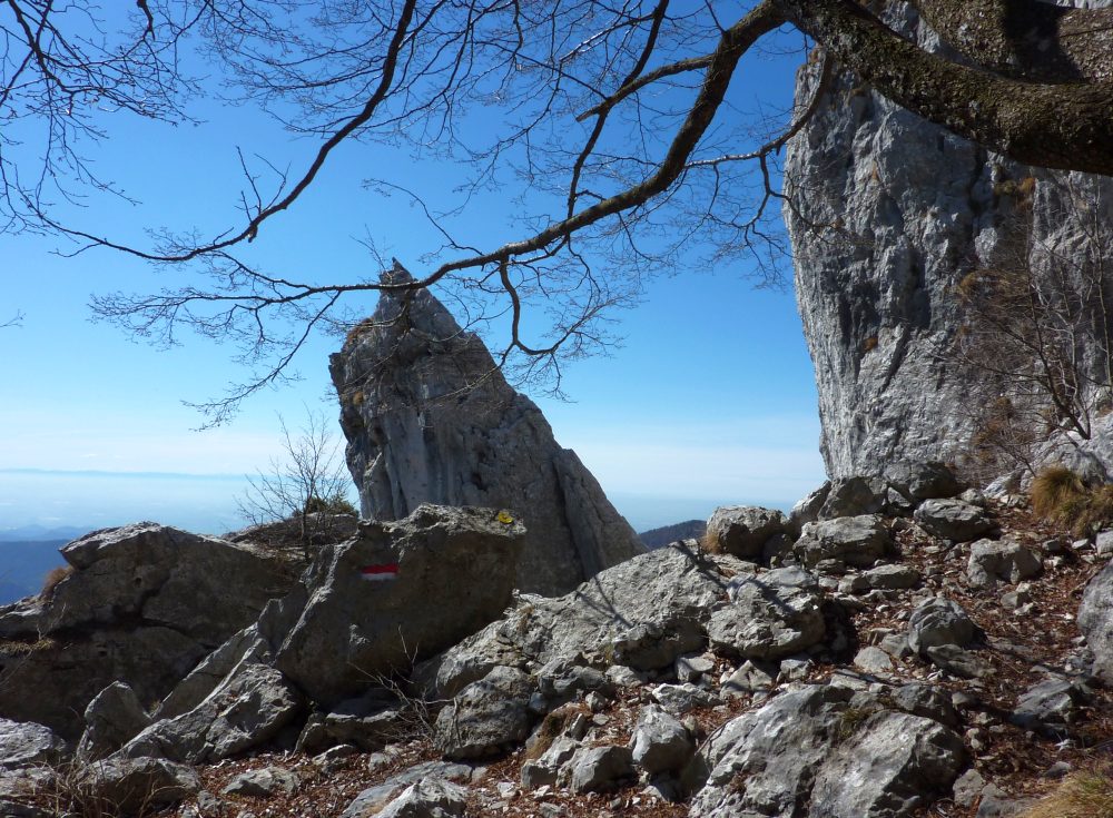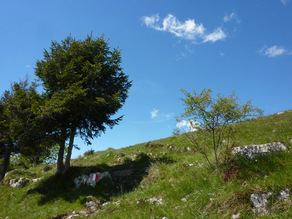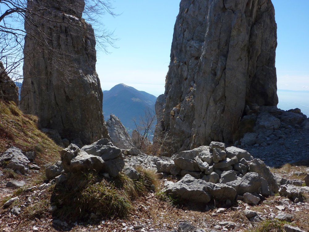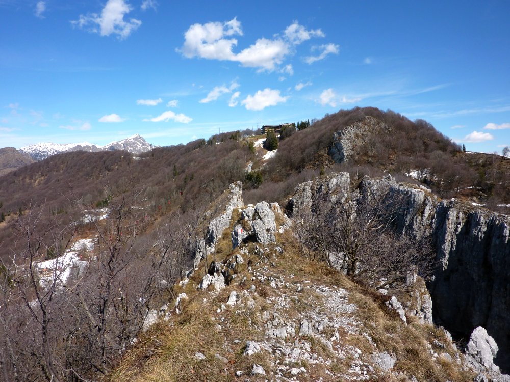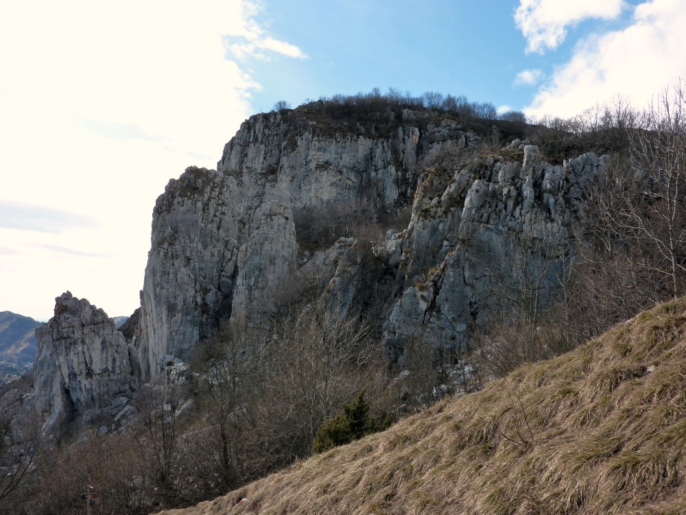 Il tracciato inizia lungo la strada a destra della chiesetta in piazza S. Mauro a Rova, in comune di Gazzaniga, attraversa la parte alta della frazione e percorre i prati soprastanti. Raggiunto il bosco, sale zigzagando lungo la valle Squadrù, quindi piega a sinistra e sale alla località Cuca; proseguendo a destra, raggiunge la baita Pradelada. Da qui il tracciato sale dapprima piuttosto ripido sulla costa del monte Ganda, poi piega nuovamente a sinistra e, con leggera pendenza, raggiunge l’abitato di Ganda (1060 m) nella piazzetta della chiesa, dove confluiscono anche il sentiero 522, il sentiero 520 e il sentiero 538. La chiesa è del XVII secolo e conserva affreschi del pittore vertovese G. B. Paganessi. Seguendo l’apposita segnaletica si giunge alla località Murena (dove si affianca per un breve tratto al sentiero 522); da qui il sentiero sale verso il M. Poieto, costeggiando l'Osservatorio Astronomico delle Prealpi Orobiche. Si giunge poi a un bivio, dove il 521 si stacca a sx dal 522 e, in breve, si arriva in vista dei torrioni della Cornagera, rinomata palestra di arrampicata utilizzata come tale da circa un secolo. Si svolta poi a destra e si raggiunge un vallone assai suggestivo denominato Labirinto: lo si percorre, si gira a sinistra e, salendo lungo facili roccette, si arriva presto in vetta alla Cornagera (1311 m).