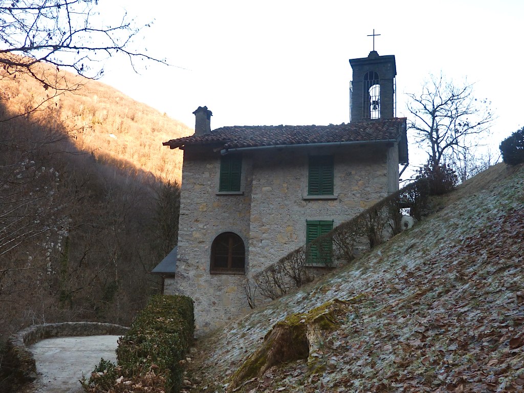 Dalla chiesa parrocchiale di Gazzaniga si sale alla chiesetta di S. Rocco, poi ci si inoltra nella valle sino a giungere alla cappelletta della Gelada (bivio con il sentiero 521A) e si continua fino a incontrare la chiesetta del Ruclisciù. Si prosegue salendo la valle di Plaz, si raggiunge un sentiero pianeggiante e, girando a destra, si arriva su un sentiero che sbuca sotto i prati di Ganda e poi alla piazzetta della chiesa (ove confluiscono anche il sentiero 521, il sentiero 520 e il sentiero 538).