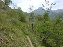 Collegamento che permettere di accorciare il percorso per il M. Alben o, comunque, per il passo di Barbata, partendo dalla val Vertova. Era un antico sentiero ormai in disuso, riaperto poi dal CAI Gazzaniga in occasione del 35° anniversario della sua fondazione. Terminata la carrareccia della val Vertova, all’altezza delle ultime captazioni di sorgenti, sulla sinistra si dirama il sentiero 527 che raggiunge il bivacco Testa. Circa 100 metri oltre, sulla sinistra, inizia il sentiero della "Borleda", come è comunemente denominato questo percorso. Si procede con alcuni tornanti nel bosco, con fondo in terra e sassi, per giungere alla baita Borleda bassa. Si prosegue sempre nel bosco, prima relativamente ripido e poi con tranquilli traversi. Si incontrano: dapprima la baita Borleda alta e, successivamente, l’ormai distrutta baita della Cagna e la baita della Foppa Cagna. Da qui la pendenza del sentiero aumenta decisamente, mantenendosi nel bosco fino al tratto finale che si svolge in spazi più aperti. Si congiunge al sentiero 525 poco prima del passo di Barbata.