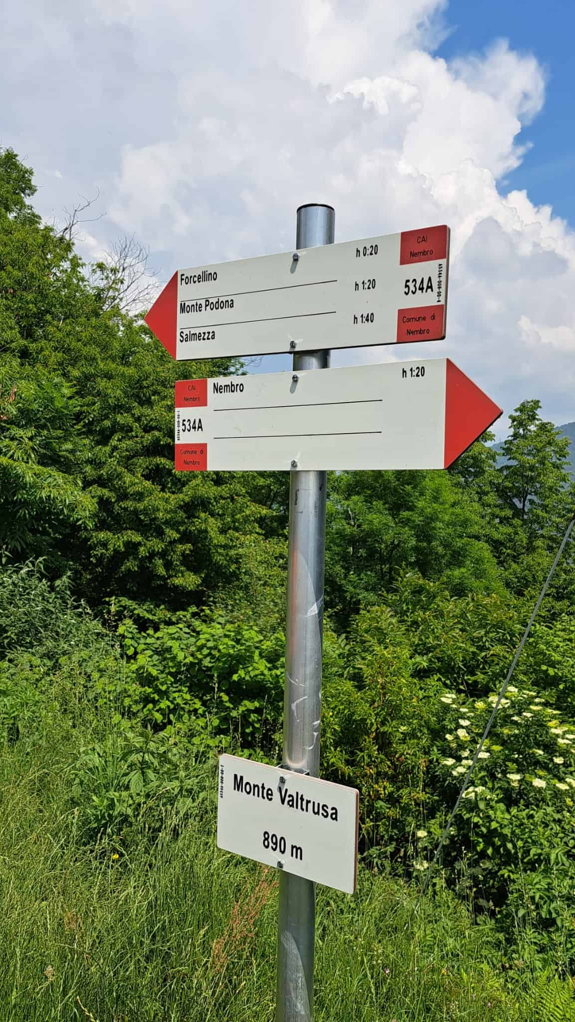 Proseguendo dritti si arriva al caratteristico Forcellino (861 m), incrociando il sentiero 535. Per arrivare alle due cime del M. Podona (le "Podone"), si sale verso nord per un ripido sentiero roccioso, che solo più avanti diventa erboso e serpeggia nel bosco, sempre salendo fino a un crocevia con traliccio Enel.