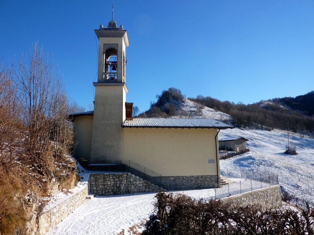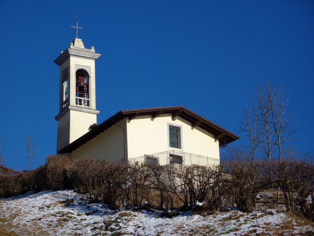 Tenendo sempre il filo della cresta, piuttosto esposto a est, si oltrepassano una piccola cima e dei prati erbosi per poi scendere verso nord-ovest e raggiungere la chiesetta di S. Barnaba (1060 m), a Salmezza.