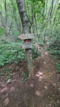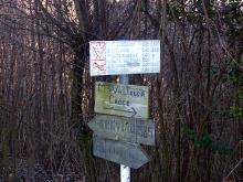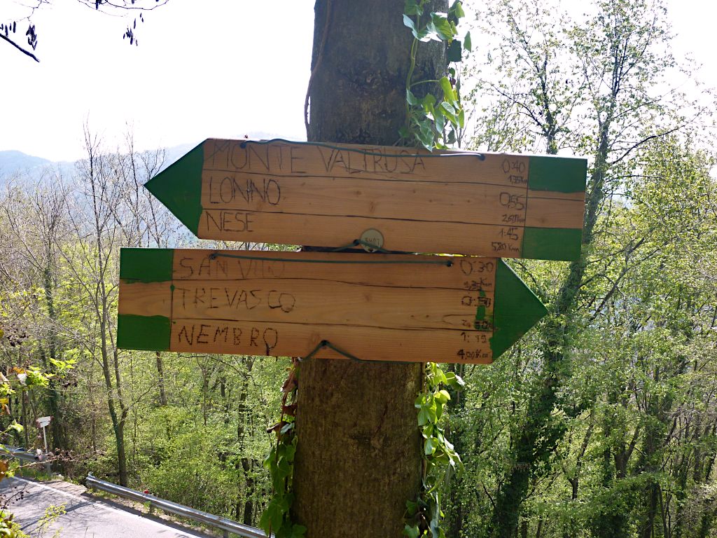 Subito prima del parcheggio, sulla dx (indicazioni) si incontra sentiero che aggira da sopra il ristorante sino a incontrare la deviazione (indicazioni) che sale ripidamente nel bosco per raggiungere la strada asfaltata per Lonno.