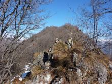 Si scende leggermente, prestando attenzione tra roccette esposte, per poi raggiungere la cima nord del M. Podona (1227 m).