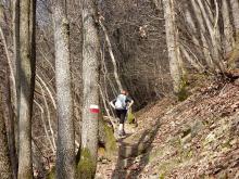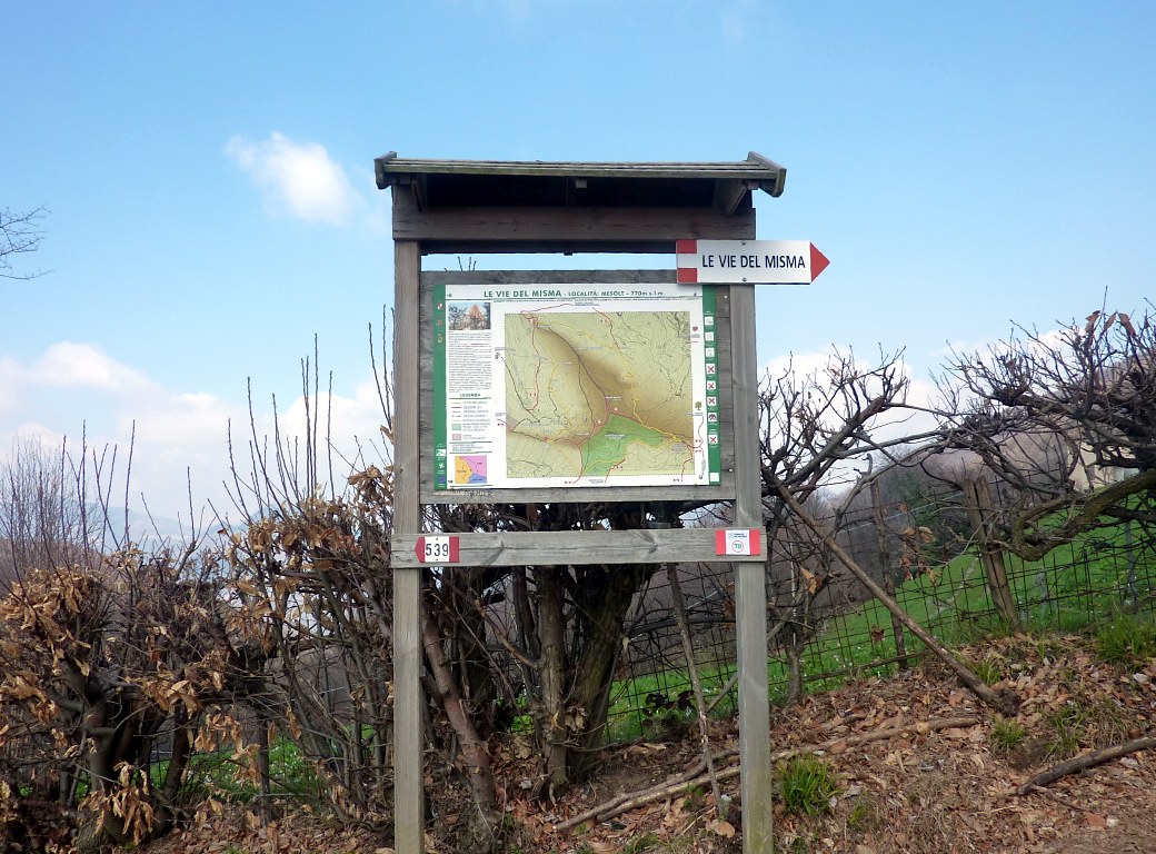 Si parte da via Fara - a ca. 335 m di altitudine - subito sotto la Chiesa vecchia di Cornale, frazione di Pradalunga (Chiesa dei Santi Fermo e Rustico). Si sale entrando ben presto nel bosco e si prosegue a mezzacosta sino ad arrivare alla località "Prat Tadòlt" - detta anche Prati Alti - bel prato con dei castagni secolari. Qui è situata baita "La Pratolina" (ca. 775 m), ora ristrutturata dal GAF (Gruppo Alpinistico Forcella di Pradalunga), che offre ristoro a chi vuole fare una scampagnata (informarsi preventivamente). Si sale dapprima per una comoda mulattiera e poi per un sentiero in mezzo a castagni e betulle, sino a congiungersi con il sentiero che sale dalla località Forcella. Con un ultimo tratto più ripido si raggiungono infine i prati sommitali del M. Misma, uscendo dal bosco proprio sul crinale a ca. 1070 m di quota. In breve si guadagna poi la panoramica vetta (1161 m), con grande croce e piastra toponomastica.