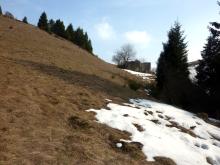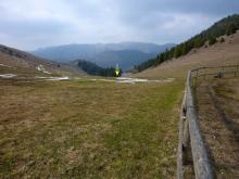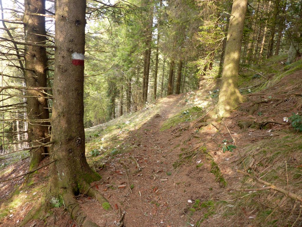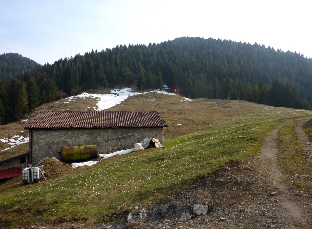 Dalla chiesetta di Santa Maria degli Angeli (1026 m), in Valpiana sopra l’abitato di Gandino, percorrendo la strada in direzione Malga Lunga si devia a destra (senso di marcia) in prossimità di un grosso masso con segnavia 544 B (quota 1045 m). Si percorre il sentiero che si inoltra nel bosco (segnavia bianco e rosso su alberi) sino a raggiungere una baita (Cascina Grumello, quota 1180 m) quindi si risale un grande maggengo. Al termine di esso - in alto a destra - il sentiero si inoltra nuovamente nel bosco. Si procede su bel sentiero (aggirando ad ovest il M. Barzena) sino ad uscire dal bosco in prossimità di un paletto segnavia posto poco prima di una casa diroccata (quota 1280 m). Si sale ancora per poco, in direzione dell’evidente staccionata che circonda la Pozza dei Sette Termini (1309 m). Proseguendo lungo la strada a fondo naturale si raggiunge la tabella segnavia del sentiero 547, con possibilità di raggiungere la Malga Lunga o Monticelli. (Il sentiero 547 è parte integrante della “Traversata tra i Pizzi”).