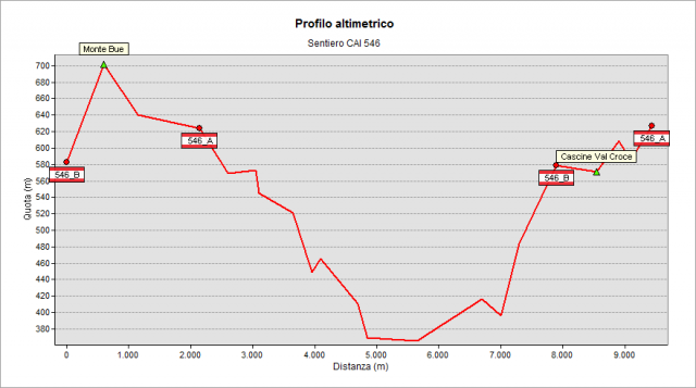 Il sentiero inizia nei pressi della strada del Monte Bò nel comune di Cene, si snoda attraverso boschi per poi sfociare nei prati del Monte Bò; per chi volesse fare il periplo del monte prima di raggiungere i prati dirigersi in direzione della località Coadul. Si prosegue per la località Col Bèc fino a "Fontanei", dove si prende la strada asfaltata; giunti al bivio si gira a destra e si scende; dopo aver raggiunto una cappelletta si abbandona la strada e si prende di nuovo il sentiero che porta a fondovalle. Continuando, si svolta a sinistra e, raggiunto l'ex cotonificio Bellora, si prosegue per la strada asfaltata che porta a Cene.