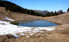 Il percorso parte da via Opifici di Gandino e segue la strada che porta a Peia. Seguendo la segnaletica si raggiunge la frazione Cima Peia; poco oltre il sentiero svolta a sinistra e imbocca una mulattiera. Si prosegue su un comodo sentiero che passa a monte dei prati di "Cap" (764 m) sino a raggiungere la località Monticelli (1116 m) dove incrocia il sentiero 513 che proviene dalla Valle Rossa. Il tracciato ora segue comodamente la nuova carrareccia, sino a transitare a poche centinaia di metri dalla Pozza dei Sette Termini, caratterizzata dal bel monumento posto a ricordo dell'atterraggio con paracadute effettuato dal generale Raffaele Cadorna nel 1944. Da tale pozza è possibile raggiungere in poco tempo la panoramica vetta del M. Sparavera, 1369 m. Il nostro percorso, invece, segue a destra (senso di marcia) la stradina che conduce prima alla Malgalonga (1235 m) e poi a incrociare il sentiero 544 e il sentiero 545.