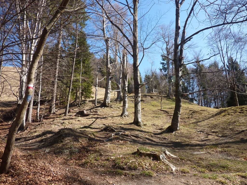 Il sentiero parte dalla località Villa, posta poco sopra all'abitato di Dossena. Dopo aver oltrepassato il campo di tamburello di circa 200 m, il sentiero è visibile sulla destra (cartello). Il sentiero 599 sale nel bosco e, quasi subito, c'è la deviazione sulla destra ove inizia il sentiero 599A (panoramico) che sale al M. Vaccareggio (a sinistra, invece, si sale con il 599 a Lavaggio). Saliamo rimanendo nel bosco fino a incontrare una radura con capanno. Si continua sempre con percorso mai troppo ripido dapprima nel bosco fitto e poi, mano a mano, più circondati da prati e radure fino a quota 1300 m circa (prestare più attenzione a seguire i segnavia a causa del tracciato meno evidente). L'ambiente si fa più brullo e roccioso fino ad arrivare a una pozza e ai visibili resti dell'attività mineraria. Sono presenti ancora cavità alle quali prestare attenzione. Dopo aver attraversato questa zona brulla e senza vegetazione, si rientra in ambiente più boscoso per arrivare in breve alla sommità erbosa del M. Vaccareggio (1474 m). Per la discesa si consiglia di seguire il sentiero 599B ("sentiero delle creste") che scende a Lavaggio e poi a Villa, da dove eravamo partiti.