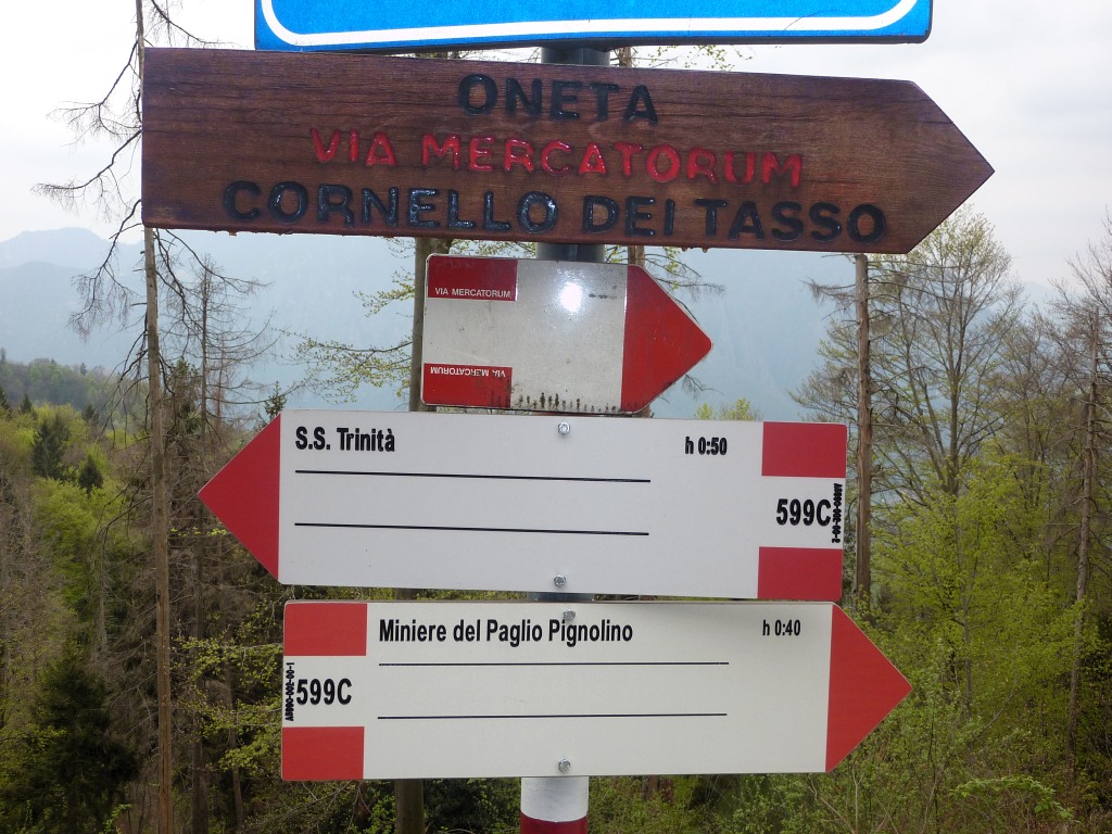Il sentiero 599C inizia in località S.S. Trinità (Dossena), raggiungibile in auto da San Giovanni Bianco o da Dossena (ampio parcheggio). Cartello con indicazioni apposto in bacheca. Si sale verso la località Beccaccia e, dopo pochi minuti, si seguono i segnavia del CAI. Si prosegue lungo un sentiero pianeggiante all'interno del bosco per circa 30' e poi, arrivati vicino ad un capanno, prestare molta attenzione ai segnavia CAI sulla destra che salendo conducono sulla strada asfaltata. Si prosegue sulla strada - verso sinistra - per 150 m circa, per poi abbandonarla scendendo per una stradella che si stacca sulla sinistra, lungo la Via Mercatorum. Si continua scendendo e, dopo 10-15', si incontra sulla nostra destra una piccola cascina. Seguendo sempre il sentiero CAI si arriva ad un bivio dove si abbandona la Via Mercatorum e si prosegue sul 599C tenendo la destra. Si sale nel bosco in leggera pendenza per altri 30' sino ad arrivare alle antiche “Miniere del Paglio” di Dossena. Il sentiero termina proprio davanti al loro imbocco e in località Prà dell'Era.