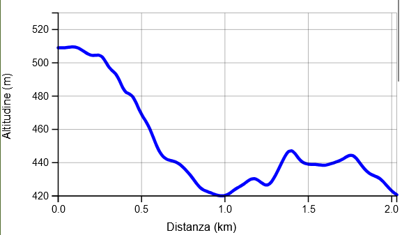 Descrizione In breve Zona Val San Martino Difficoltà E: Escursionistico Periodo consigliato tutto l'anno Attrezzatura consigliata scarponi ed abbigliamento da media montagna Tempi Andata 0:30 Ritorno 0:35 Topografia Dislivelli Salita ca. 25 m Discesa ca. 115 m Profilo altimetrico Scarica il file GPX Visualizza in mappa