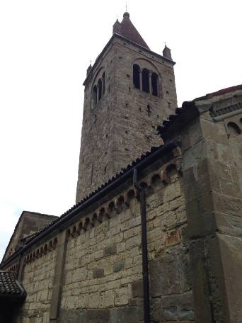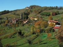 Dunque, noi dobbiamo continuare sul Sentiero n° 891 che sale sulla destra su una bella mulattiera che all’inizio è costeggiata da vigneti e dove si gode del magnifico panorama. Si entra nel bosco con querce, castagni, ciliegi e varie piantagioni di olivi. ATTENZIONE, SEGUIRE SEMPRE LA SEGNALETICA CON CARTELLI E BOLLINI CAI BIANCO-ROSSI mantenendo il sentiero principale. Si arriva ad un bivio; se si prosegue dritti, dopo circa 100 m si arriva al “Porcile” (cascinale con ruscello che vale la pena visitare) dal quale si può proseguire e raggiungere Sotto il Monte. Noi, invece, al bivio, dobbiamo svoltare a destra salendo sempre lungo la mulattiera. Si giunge quasi al termine della mulattiera dove troviamo di fronte a noi una casa abitata e i Ruderi del Canto. Noi dobbiamo invece salire sulla destra sul terreno in pendenza per raggiungere la Chiesetta di Santa Barbara, (quota 667 m).