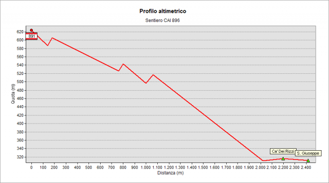 A fianco del Santuario si trova un parcheggio. Dunque, per percorrere il sentiero 896 si prosegue su strada asfaltata, per 150 m, fino a imboccare sulla sinistra il sentiero da seguire leggermente in salita. (ATTENZIONE ALLA SEGNALETICA, NON BISOGNA PROSEGUIRE DRITTI SULLA STRADA ASFALTATA).