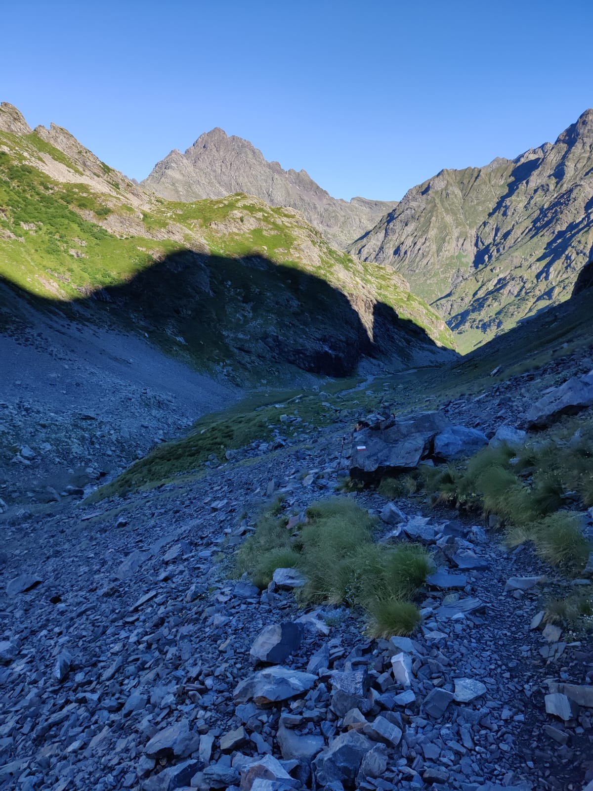 Valbondione (935 m) > Rifugio Curò (1915 m) > Val Cerviera > Recastello (2886 m) > Rifugio Curò > Valbondione