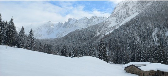 Programma: Ci si incammina per la strada provinciale 294 (chiusa al traffico e innevata) che porta al passo del Vivione, calzando ramponcini o ciaspole a seconda della situazione. Dopo alcune centinaia di metri si imbocca il sentiero/traccia che, passando per Malga Campo (1,393 m,) e incrociando più volte la strada nella splendida abetaia, porta a Malga Cimalbosco (1.530 m.) e al rifugio Cimon della Bagozza a 1.600 metri (3 km circa dalla partenza). Lasciato il rifugio e procedendo seguendo le indicazioni per il passo dei Campelli, si supera il bosco e dopo circa 1,5 Km si giunge alla Madonnina dei Campelli (1.710 m,) posta in un magnifico punto panoramico dominato dal Cimon della Bagozza. Ripreso il cammino, in sensibile salita si raggiunge Malga Campelli Alta a 1.818 m. e, dopo un ultimo sforzo in 15 minuti il Passo dei Campelli (1.890 m.), meta dell’escursione (6,5 Km dalla partenza).