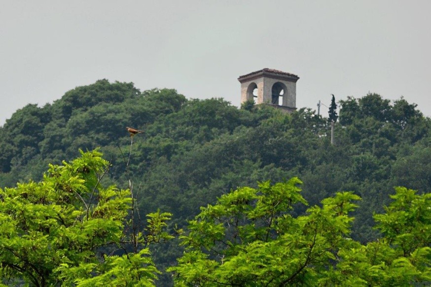 Lasciate le auto ci dirigiamo verso San Paolo passando dalla vecchia fornace e saliamo alla cascina chiamata Casot per poi imboccare il sentiero della luna che ci porta in mezza costa al monte San Giorgio (433 mslm) dove si gode di un bel panorama sulla pianura Padana e sulle alpi Piemontesi e Lombarde: nelle giornate limpide riusciamo a scorgere, ad occhio nudo, i grattacieli di Milano, il monte Rosa, il Monviso. Sulla sommità insiste un edificio ecclesiastico rimaneggiato risalente al XII secolo. Torniamo sui nostri passi e percorriamo la dorsale dei monti d’Argon fino all’eremo di Santa Maria in Argon con annesso santuario costruito sulle rovine di un antico tempio pagano, dipendenza del monastero benedettino fondato ai piedi del colle dove i monaci si ritiravano in preghiera.