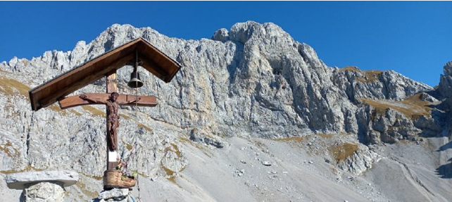 Dal Passo della Presolana si imbocca il sentiero 315 per il rifugio Cassinelli, che si snoda con pendenze medie in un bel bosco di abeti. Al bivio con il sentiero 316 per il monte Visolo si prosegue per un tratto in salita e poi si gira a sinistra fino a raggiungere il panoramico rifugio Cassinelli (m.1568). Da qui, seguendo la strada sterrata, si prosegue poi a sinistra seguendo le indicazioni per il “sentiero delle capre” (sent.319 A). All’inizio si sale con pendenze sostenute e, successivamente, in salita più blanda, per pascoli lungo la costa della montagna fino al bivio (m.1833) con il sentiero che proviene dal Colle Presolana. Da qui inizia il percorso spettacolare che porta verso i ghiaioni: è il tratto più aereo e più “tecnico” e richiede molta attenzione perché il terreno è sassoso e ghiaioso con punti leggermente esposti. Dopo circa 50 minuti di cammino si raggiunge il Passo degli Agnelli (m.1950) e, in dieci minuti, il “Signore dei Ghiaioni” (m.2004), ovvero il bel crocefisso ligneo posto in posizione dominante verso la parete sud della Presolana e i suoi ghiaioni. Poi, in circa 20 minuti, si discende al Rifugio Olmo (m.1819) dove è previsto il pranzo al sacco. (Il rifugio in questo periodo è aperto).