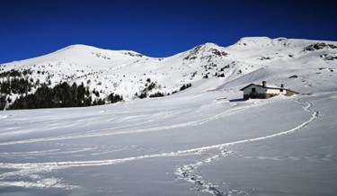Calzati gli scarponi e i ramponcini si scende nella piana e ci si incammina con una lieve pendenza in direzione Nord fino ad un abbeveratoio per mucche ed una evidente sella. Tratto comune al percorso A. Qui deviamo a destra, si sale sul crinale e, tenendo il percorso di costa, si punta in direzione dell’arrivo dello skilift, ormai dismesso. Da qui si scende poi al Ristorante Ristorobie. Tempo indicativo circa 2,00 ore, più soste.