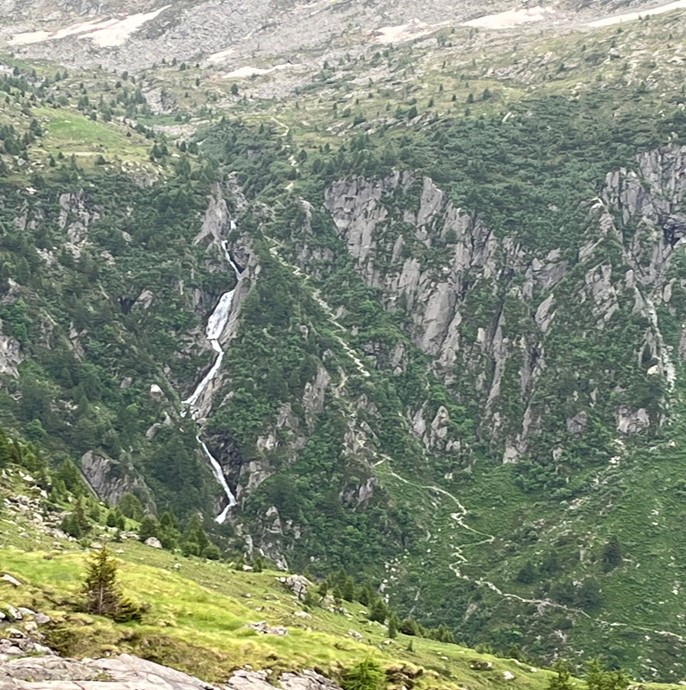 Bella escursione, In un contesto paesaggistico e naturalistico di grande pregio, con giro ad anello che permette di passare dai noti rifugi di Sonico in Val Camonica, il Premassone, il Gnutti, il Baitone ed il Tonolini per i più allenati collegati tra loro dal bel sentiero molto panoramico ed al cospetto di cime quasi tutte superiori ai 3.000m. (cima Prudenzini, corno Miller, punta Prina, cima Plem, corno Premassone, corno Baitone, cima dei laghi gelati, cima delle granate ed altri nel Parco regionale dell’Adamello. Nel percorso di andata percorreremo l’affascinante scala del Miller che ci farà guadagnare 250m di quota in meno di 700m. rappresentata nella foto a lato, in sinistra orografica della cascata del torrente Remulo.