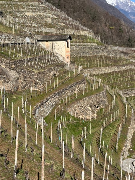 Escursione lungo il sentiero dei terrazzamenti in Valtellina sul versante in sponda destra del fiume Adda al cospetto delle cime ancora imbiancate che segnano il confine con la provincia di Bergamo (Punta di Scais, Pizzo Coca, Pizzo del Diavolo della Malgina, Monte Torena). Avremo occasione di attraversare vigneti, meleti, boschi e magnifici borghi di origine antichissima e ammireremo nei centri ben conservati piccole corti, vecchi portoni, palazzi nobiliari semi-abbandonati e vecchie case contadine vedremo quattrocenteschi palazzi di famiglie che si sono affermate in diversi campi ed hanno dato lustro al loro paese di origine; vedremo, per citarne alcuni, palazzo Guicciardi a Ponte, palazzo Quadrio de Pontaschielli a Chiuro, palazzo Besta (meriterebbe una visita) e palazzo Cattani-Morelli a Teglio