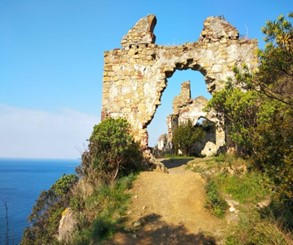 Superati i ruderi della Chiesa di Sant’Anna, posti in posizione dominante e panoramica, il sentiero prosegue quasi in piano con una vista mozzafiato sul Golfo del Tigullio.