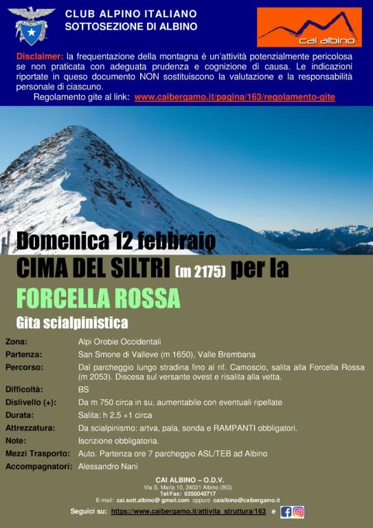 Cima Siltri M2175 Gita Scialpinistica Cai Albino