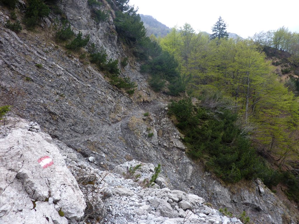 Il 101 traversa un paio di canaloni, in alta valle di Cassiglio