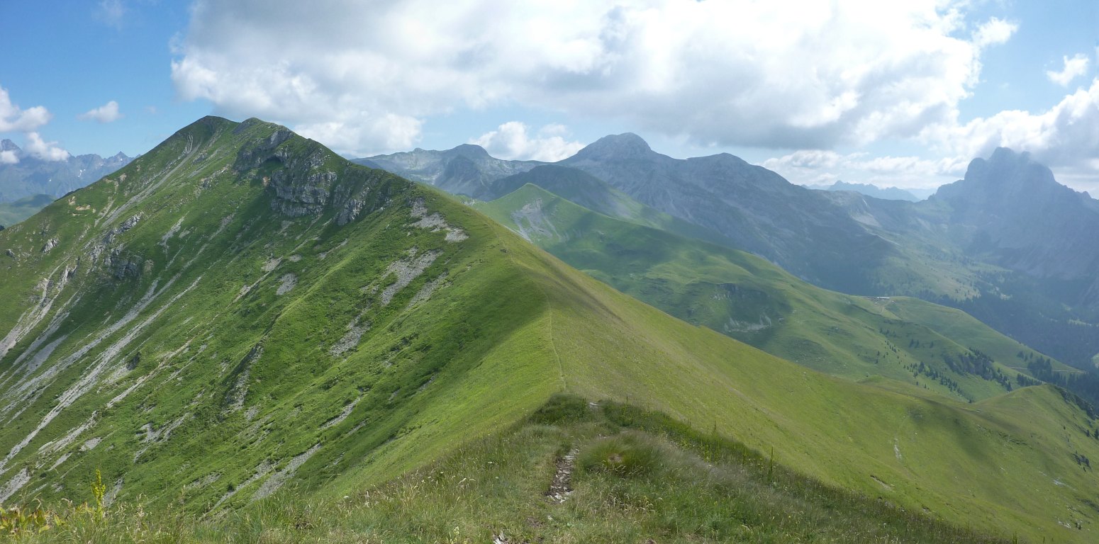 Dalla vetta del M. Vodala: il 314C percorre questa cresta per giungere alla Cima Benfit là a sx.