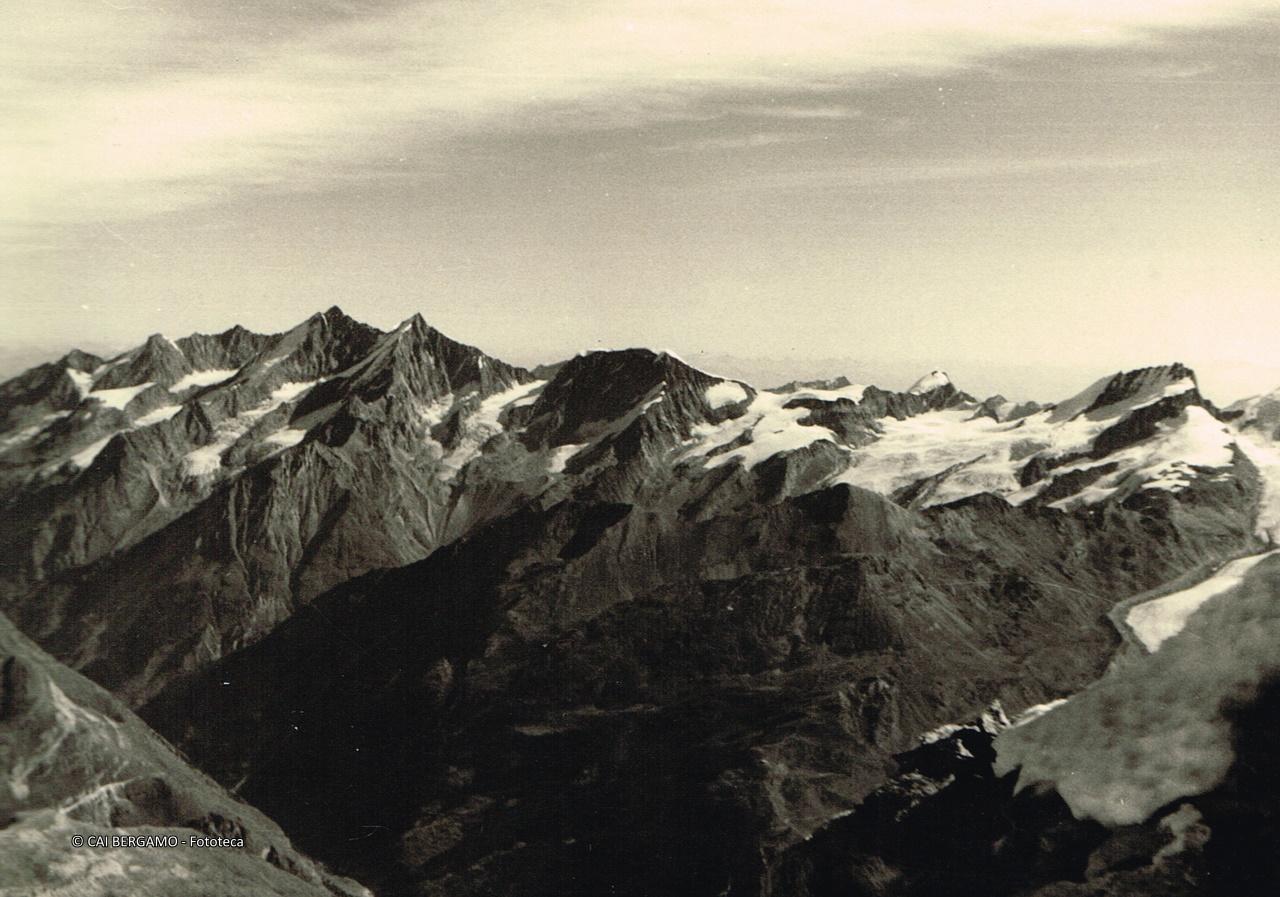 "La catena del Mischabel (Dom, Täschhorn, Alphubel, Allalinhorn e Rimpfischhorn) dalla vetta del Cervino"