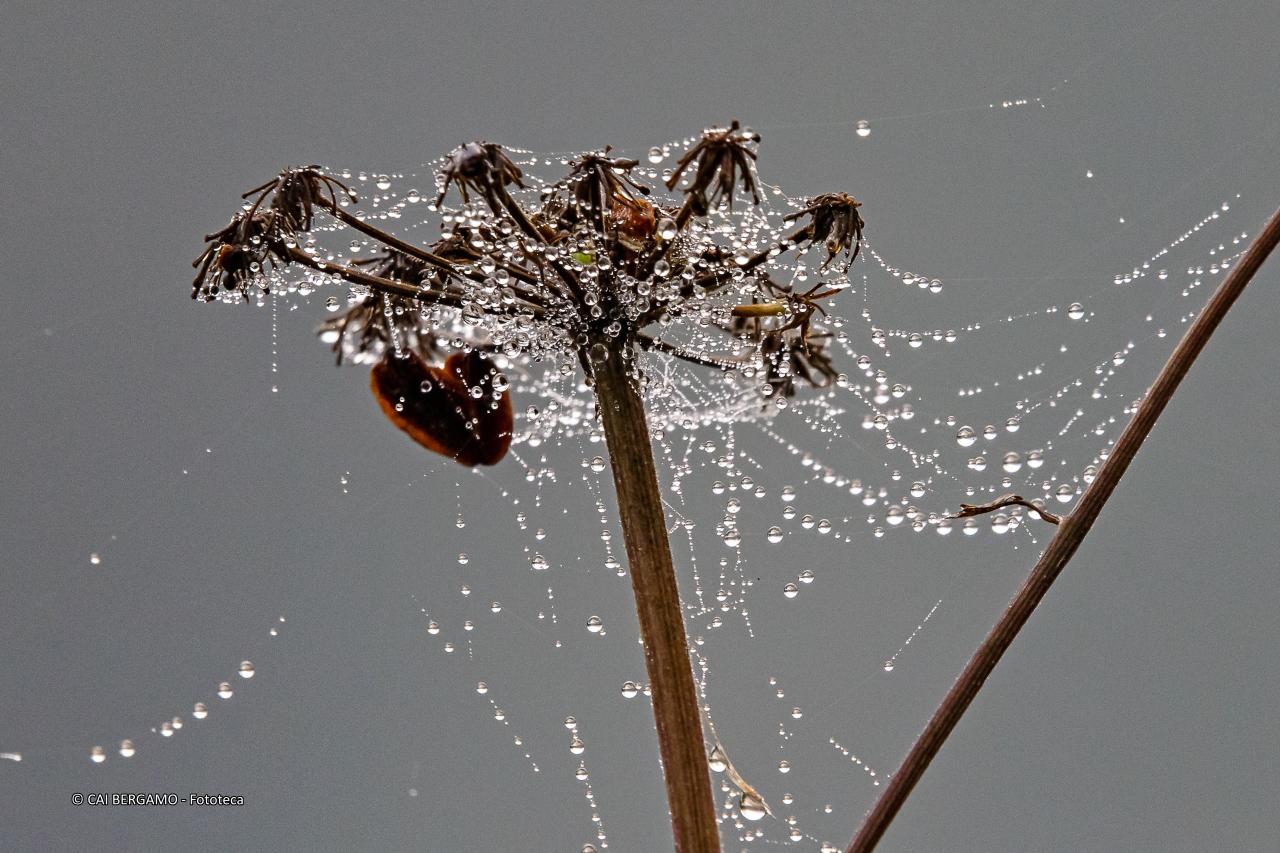 "Decorazioni Natalizie" - segnalato in "L'acqua in tutte le sue forme" - Fili di ragnatela con gocce d'acqua su piantina indefinita