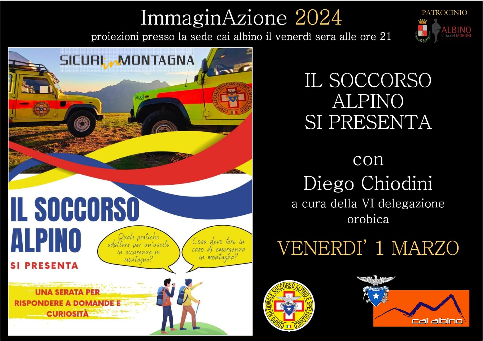 Venerdì 01 marzo presso sede CAI Albino, Via Santa Maria ,10 alle ore 21, nell'ambito dellla rassegna ImmaginAzione 2024 serata con Diego Chiodini: