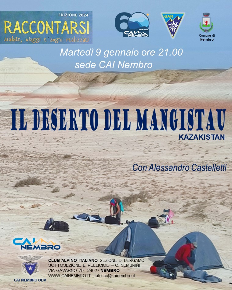 Continua la rassegna RACCONTARSI ed in questa serata ALESSANDRO CASTELLETTI racconterà la sua esperienza ne IL DESERTO DEL MANGISTAU - KAZAKISTAN